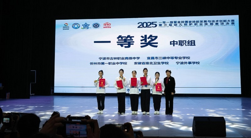 在12月9日内蒙古鄂尔多斯刚刚落幕“2025一带一路暨金砖国家技能发展与技术创新大赛之第三届幼儿照护职业技能赛项”决赛中,安徽省淮北卫生学校选手孙曼亭、李佳音、侯雨娜团队斩获一等奖,学校获“最佳组织奖”、并实现该赛项成绩的“三连冠”!